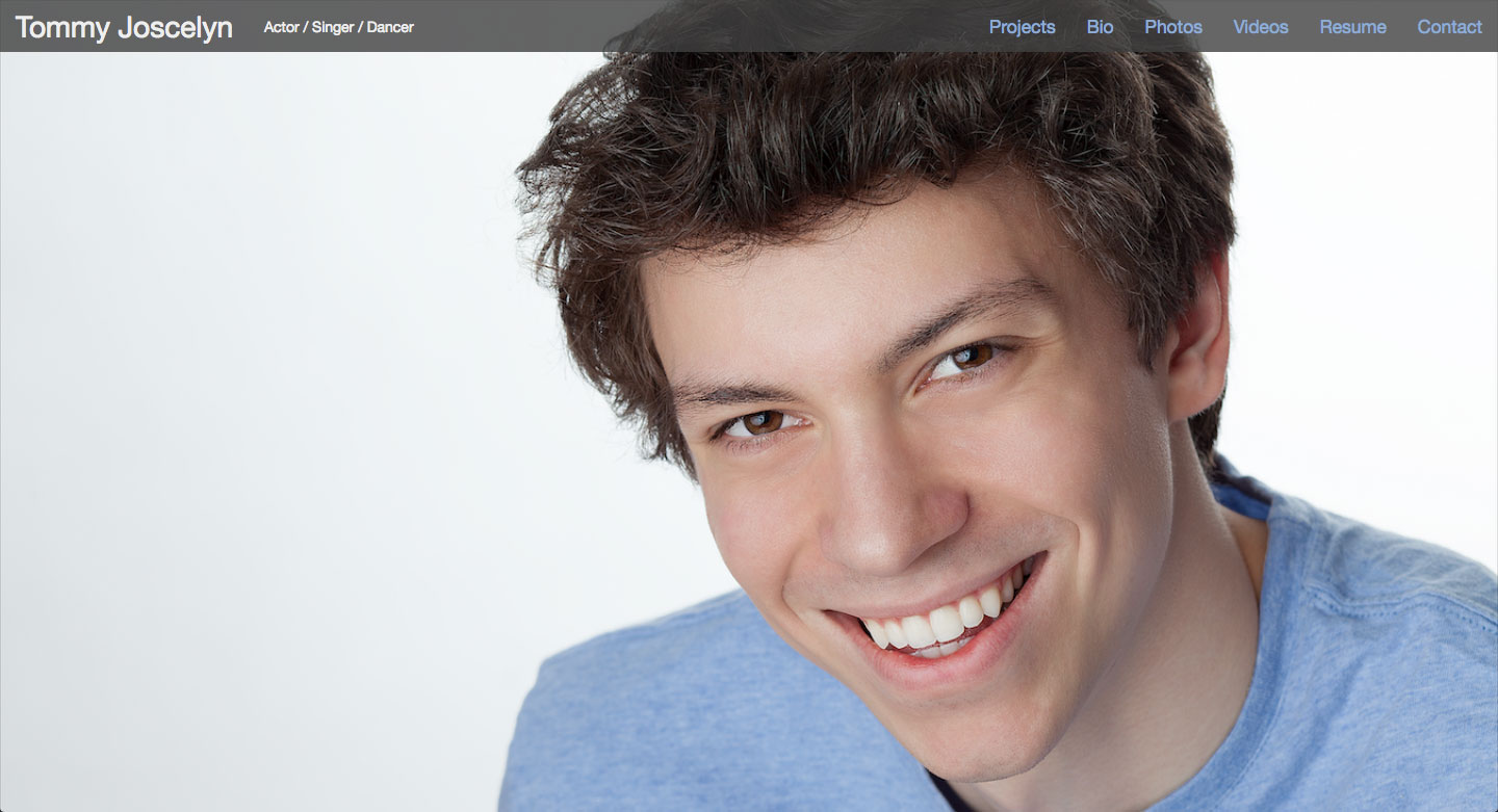 This site was created for my private client, Tommy Joscelyn, who is a professional actor, singer and dancer. The site was created using HTML5 and the Bootstrap front-end component library, with a custom CSS3 file, to help Tommy showcase his talent, engage with his fans and connect with potential employers. All of the images on this website belong to the client, Tommy Joscelyn.